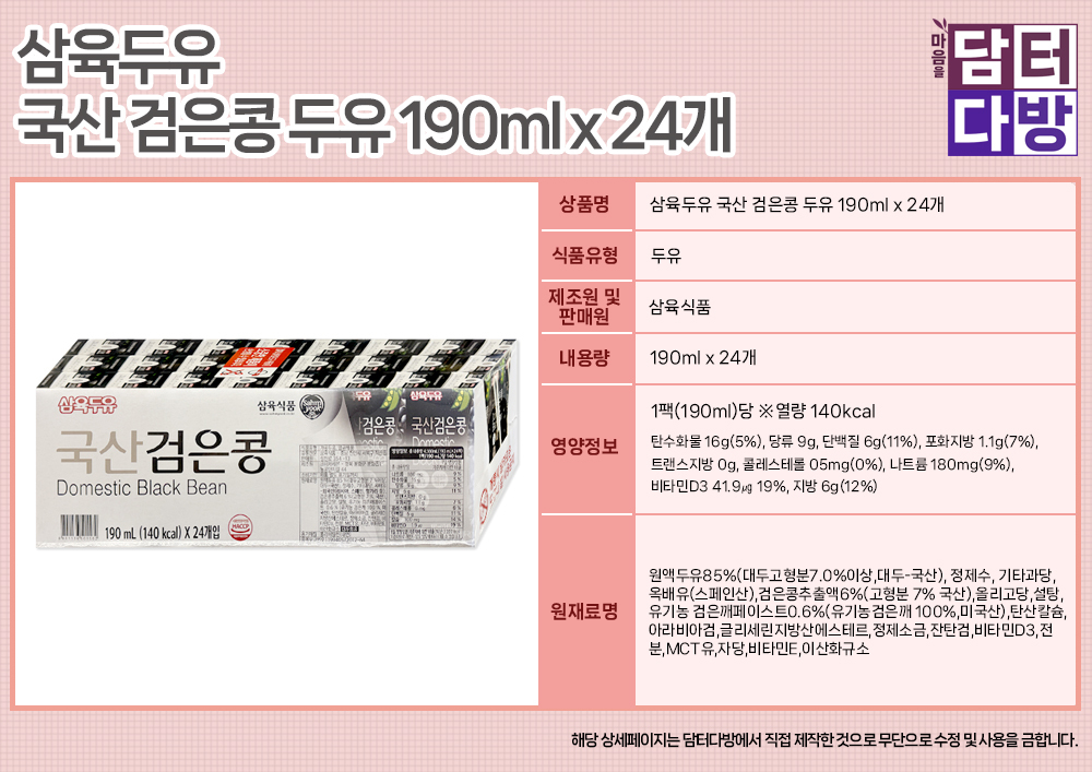 삼육두유 국산 검은콩 두유 190ml x 24개