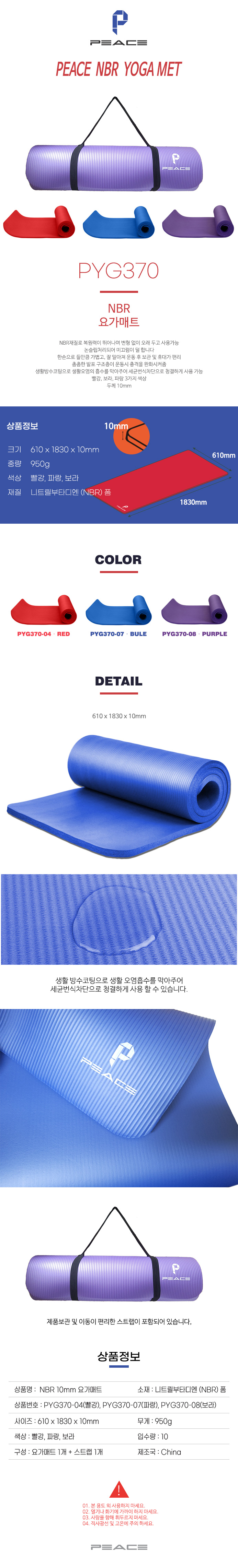피스 스트레칭 다이어트 요가매트 NBR 10mm PYG370