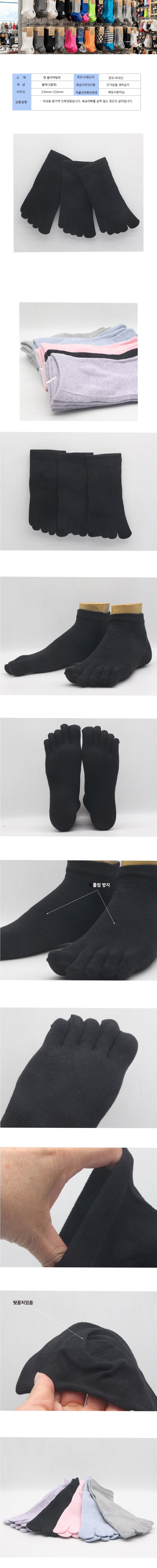 여성용 무지 단목 발가락 양말 블랙 3켤레