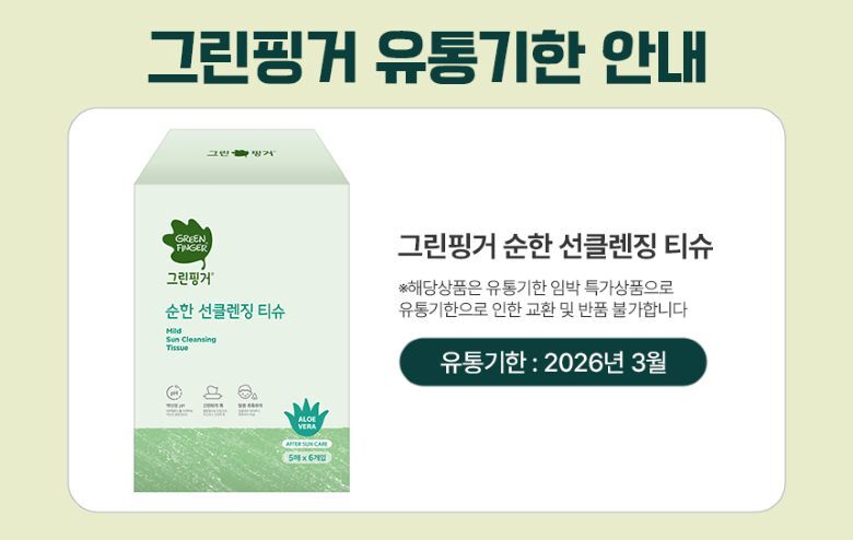 • 모델명 그린핑거 순한 선클렌징 티슈