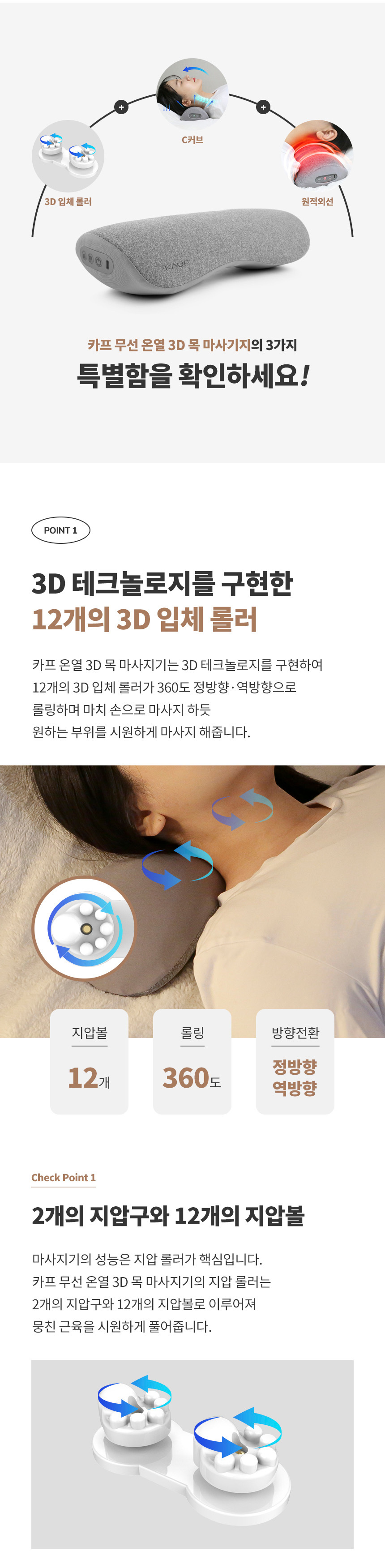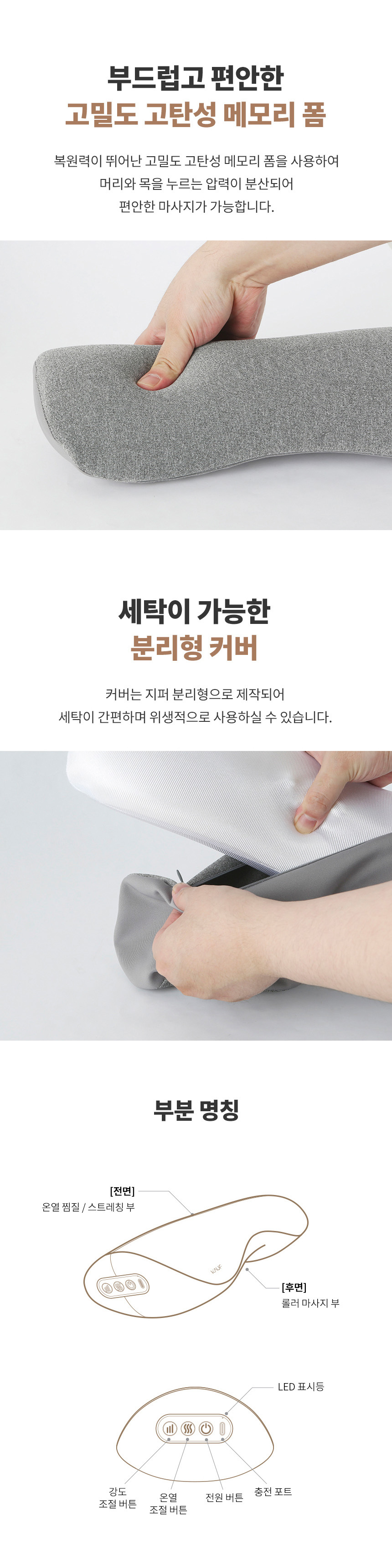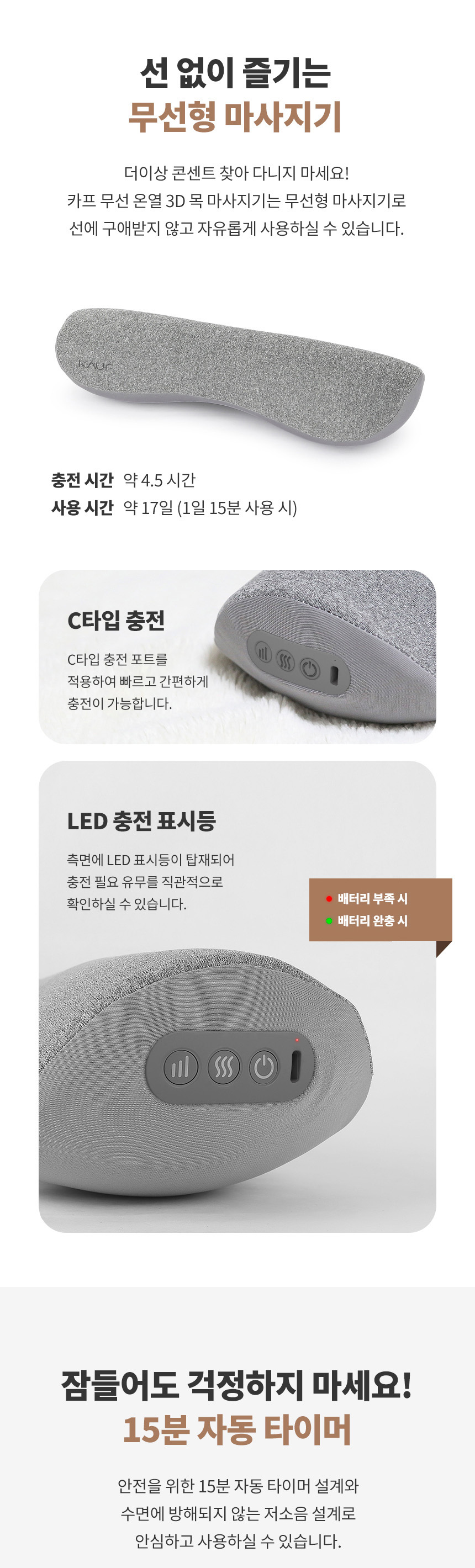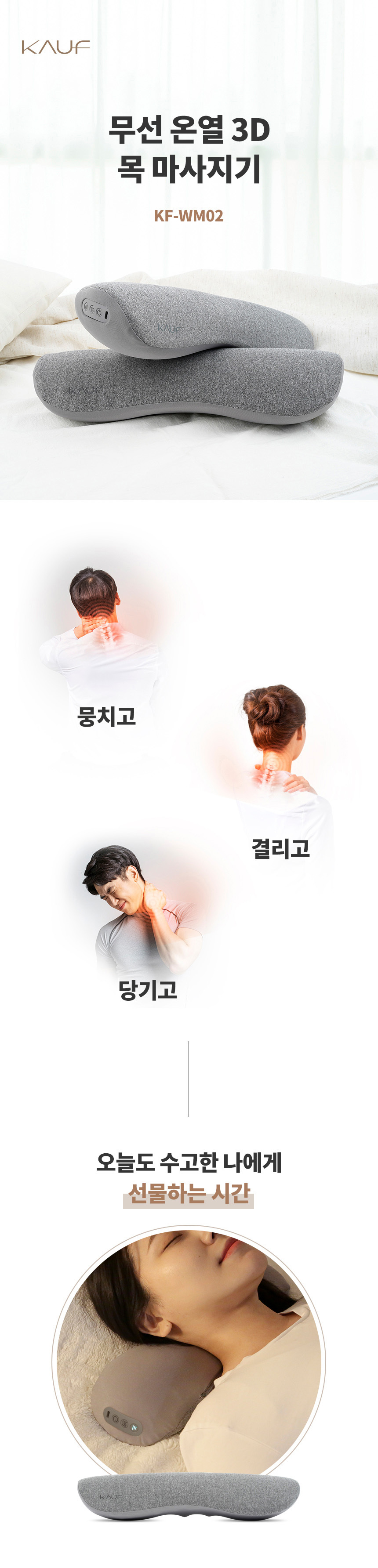 [폰세사리] KAUF 스마텍 무선 온열 마사지 베개 목 어깨 쿠션 공기압 승모근 마사지기 방향전환 3단계 강도