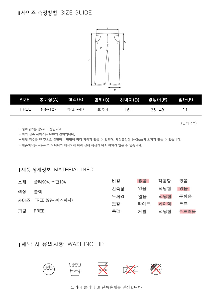 신축성 좋은 검정 고리 기본 레깅스 빅사이즈