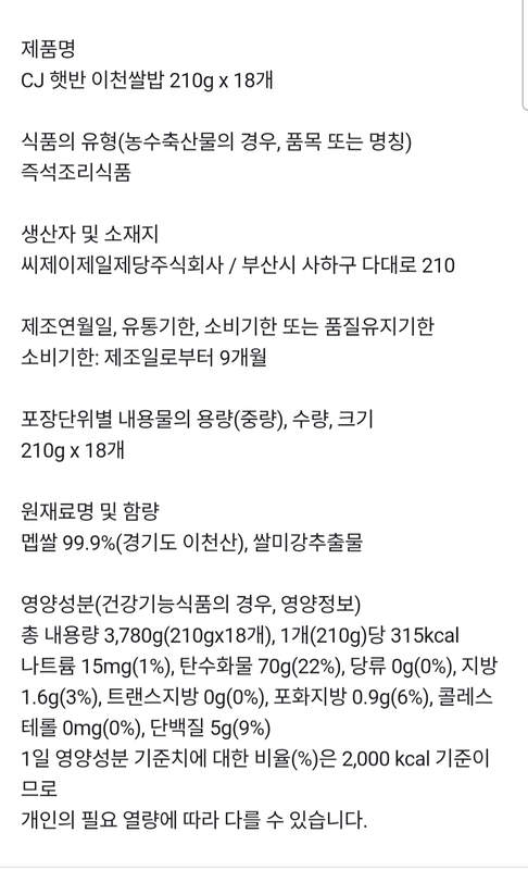 • 모델명 CJ 햇반 이천 쌀밥